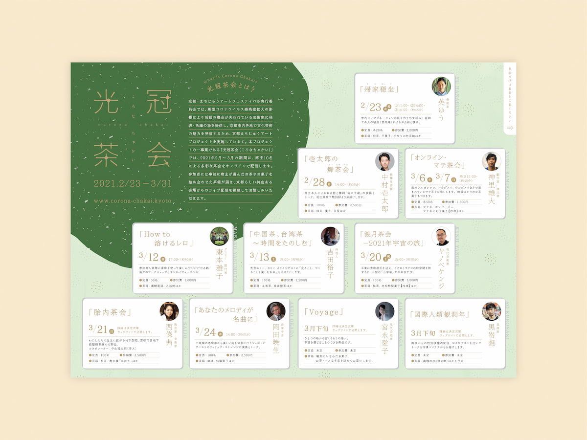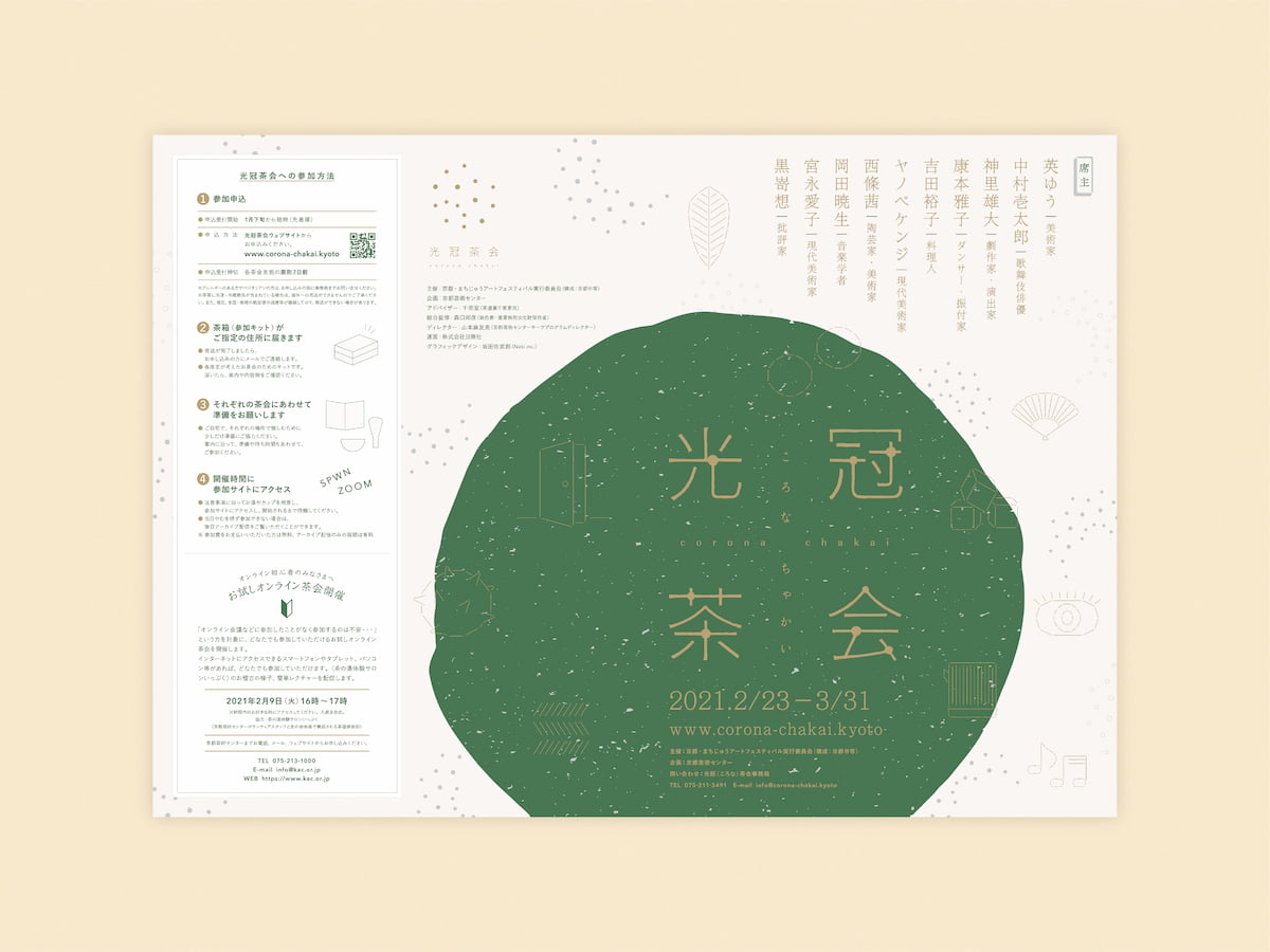 Graphic 光冠茶会 Graphic Logo & Branding 光冠茶会 オンライン茶会イベント「光冠茶会」のロゴを含む、メインビジュアル等のデザインを担当しました。 デザイン 坂田佐武郎(Neki inc.) 関連サイト 光冠茶会 イベント詳細ページ Latest Post 文芸誌301 第6号 第21回京大変人講座「チンパンジーはなぜ絵を描くのか?!」 ACK キッズプログラム LinkArchiScape ー建築ツーリズムをつなぐ 令和7年度 門真市中学生のためのオーケストラ鑑賞会 まちごとまきこむEXPOマガジン「万博世代」