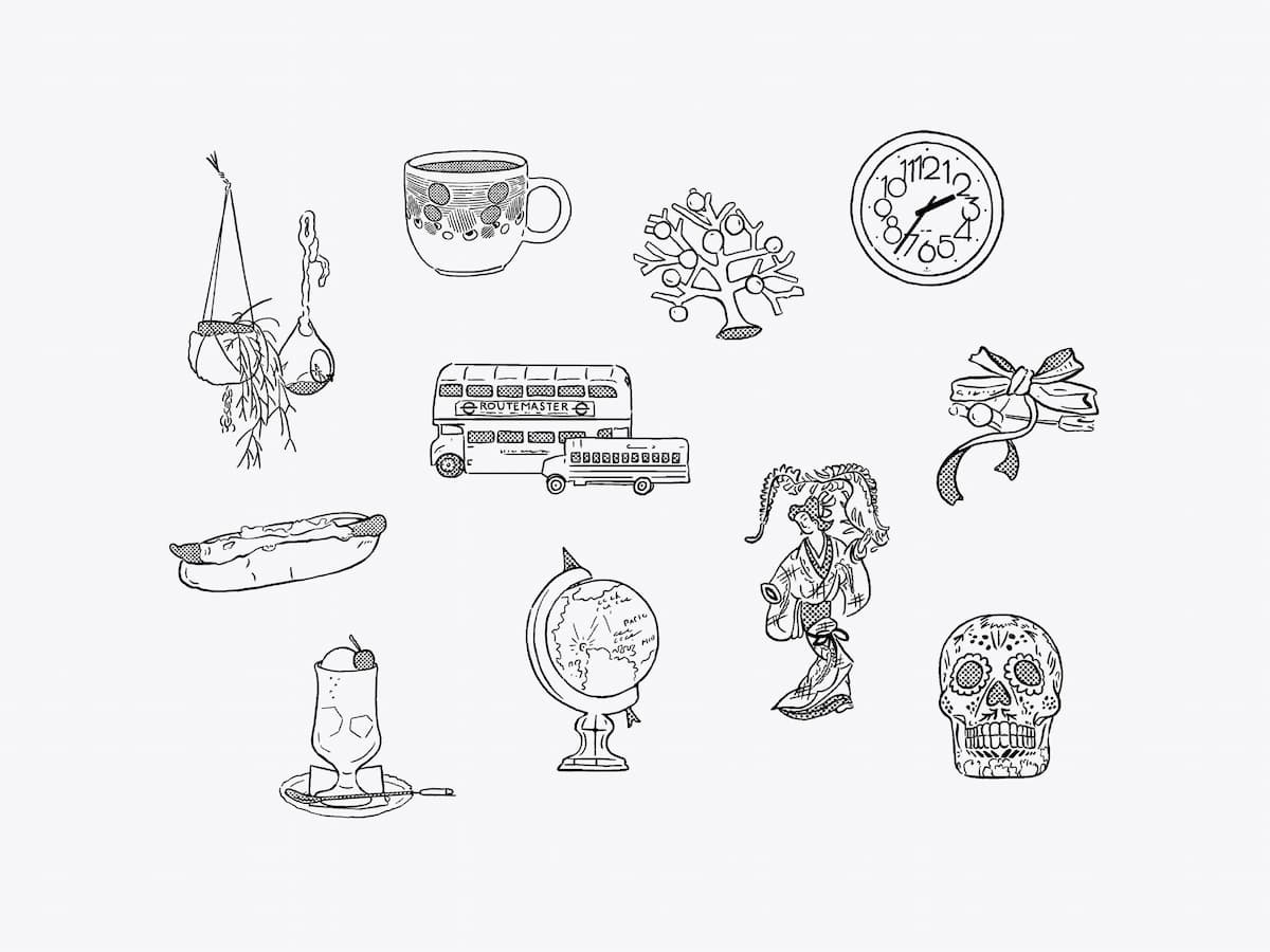 この本では書籍全体のデザインの他に線画のイラストも担当しています。
