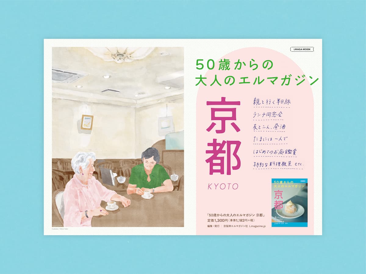 京阪神エルマガジン社さんから発売の、50歳からの大人世代に向けた京都案内の本「50歳からの大人のエルマガジン 京都」のデザインを担当しました。