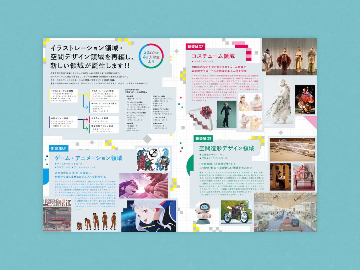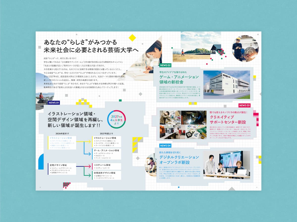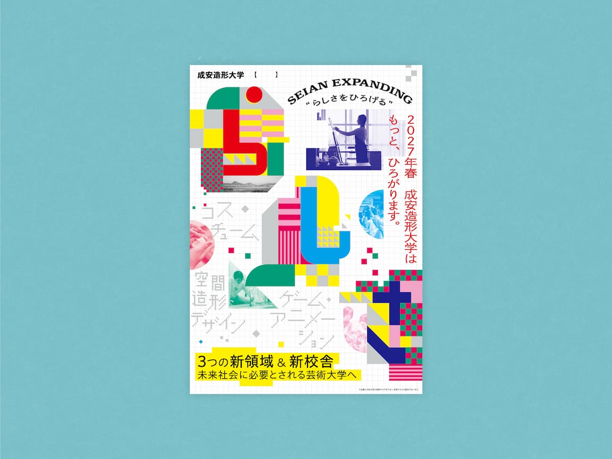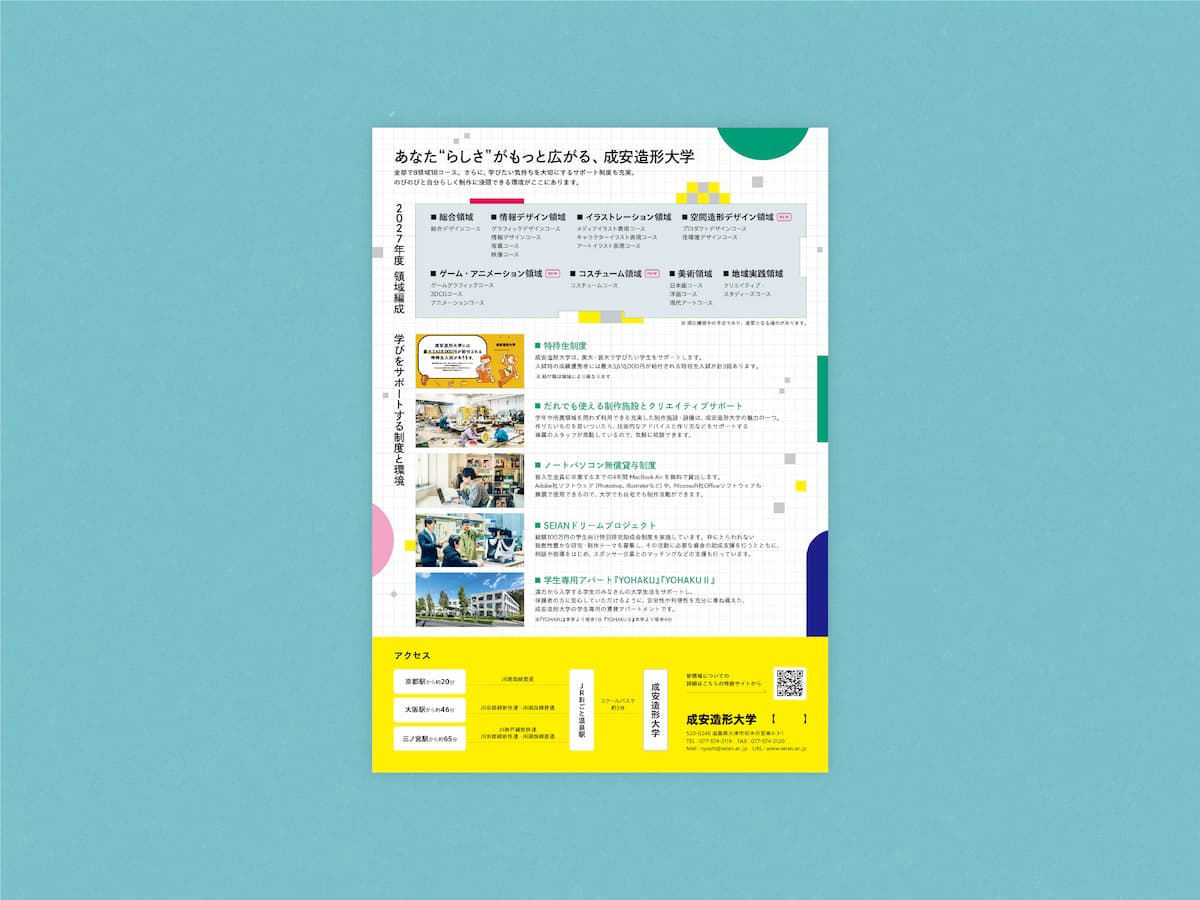 滋賀にある成安造形大学の新領域開設&新校舎建設についてのメインビジュアルをはじめ、チラシ等のデザインを担当しました。
