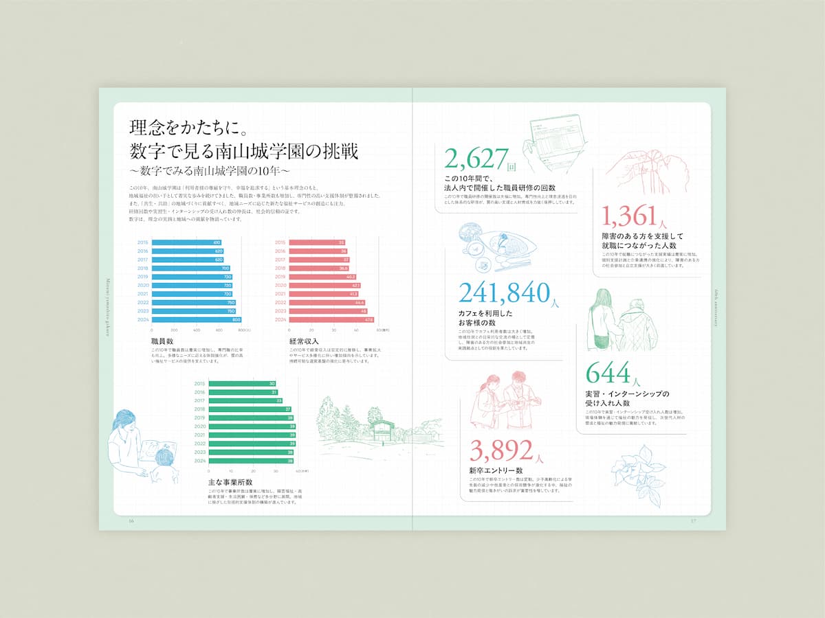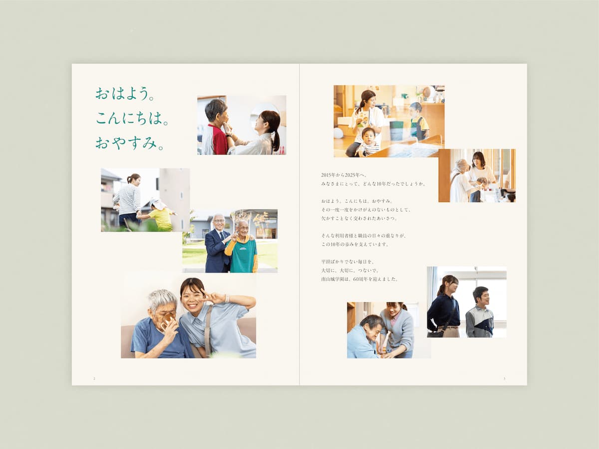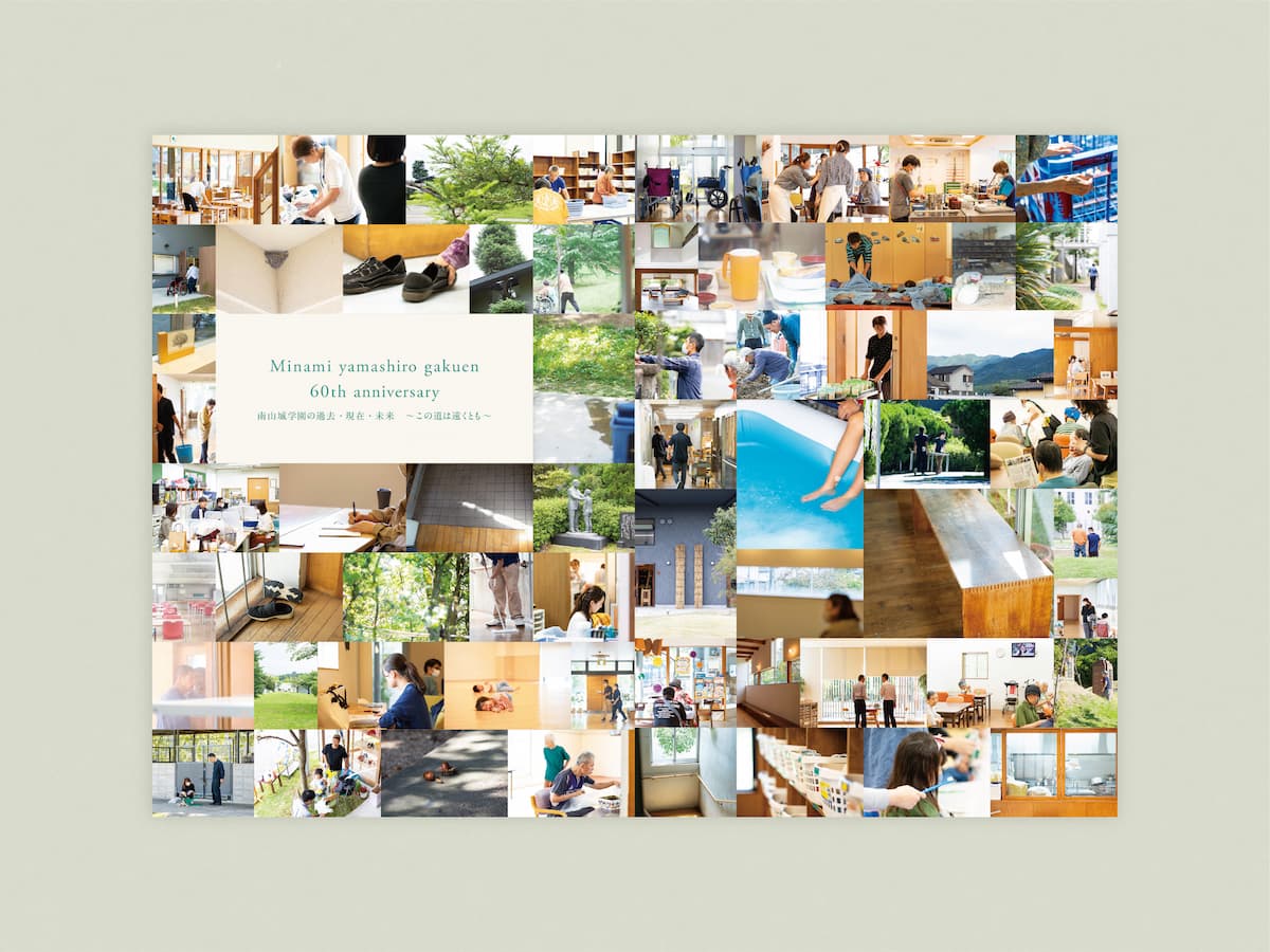2025年7月に行われた社会福祉法人南山城学園の創立60周年記念式典で配布された記念冊子をはじめ、会場内のツールなどのデザインを担当しました。