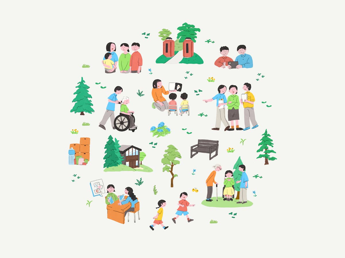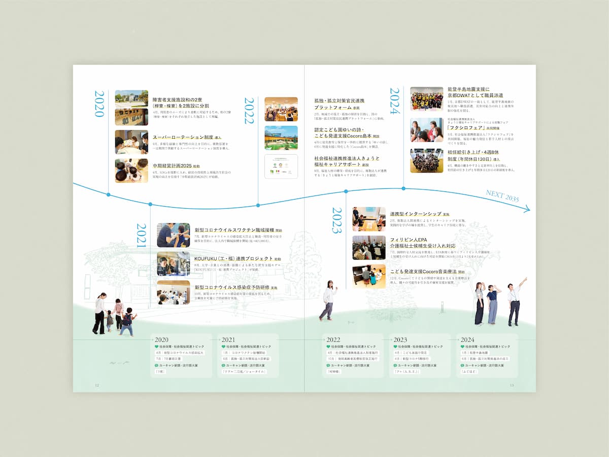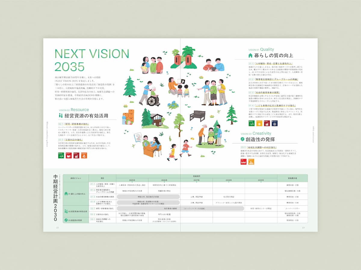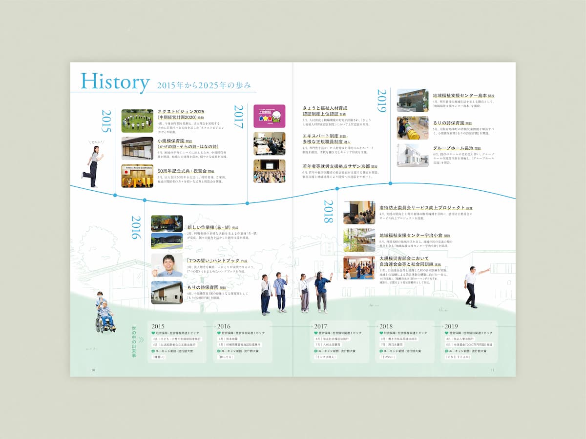 2025年7月に行われた社会福祉法人南山城学園の創立60周年記念式典で配布された記念冊子をはじめ、会場内のツールなどのデザインを担当しました。