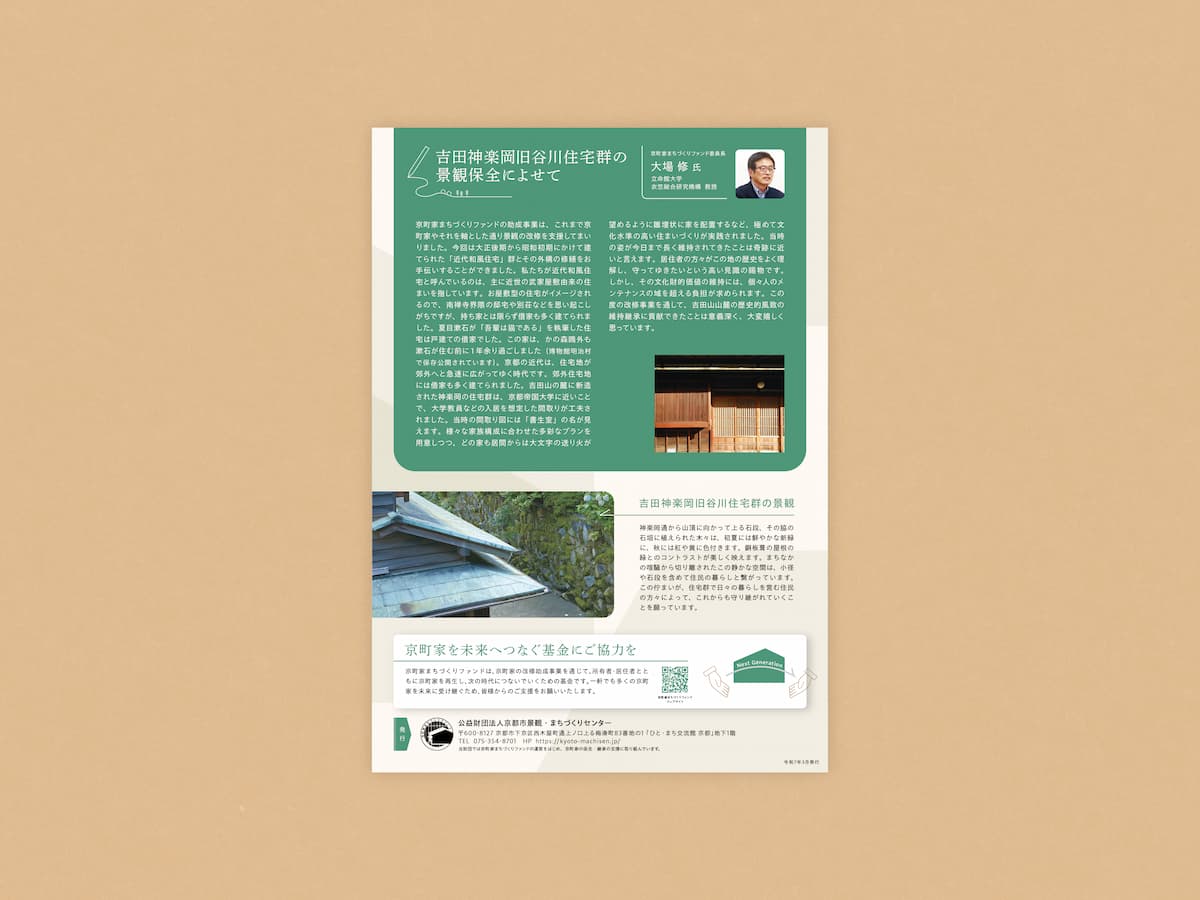 そのなかの「吉田神楽岡旧谷川住宅群プロジェクト」のパンフレットデザインを担当しました。