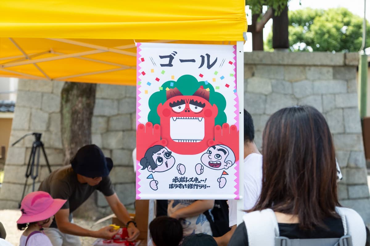 このイベントは、「地震で地獄に落ちた仏様を子供達が助けながら、防災の力を身につけていく」というストーリーを設定し、子どもたちにも楽しく防災を学んでもらいたいと考え、キャラクターなどのでデザインもしています。