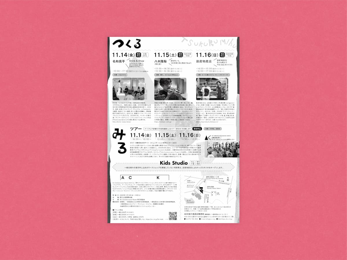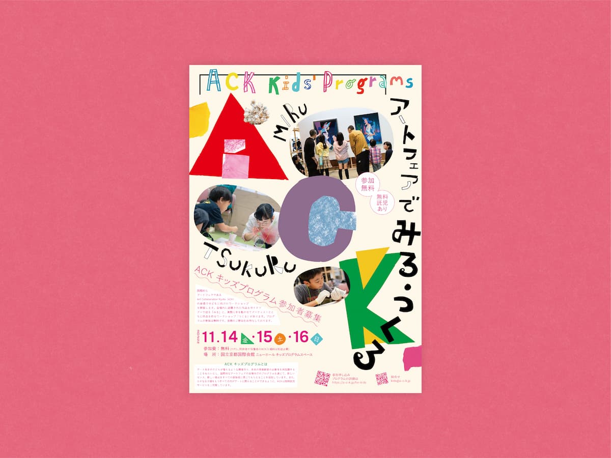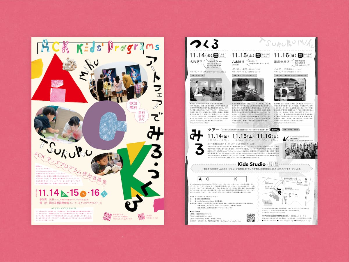 国際的なアートフェアであるArt Collaboration Kyoto(ACK)の会場で行われた子どもに向けたワークショップのチラシデザインを担当しました。