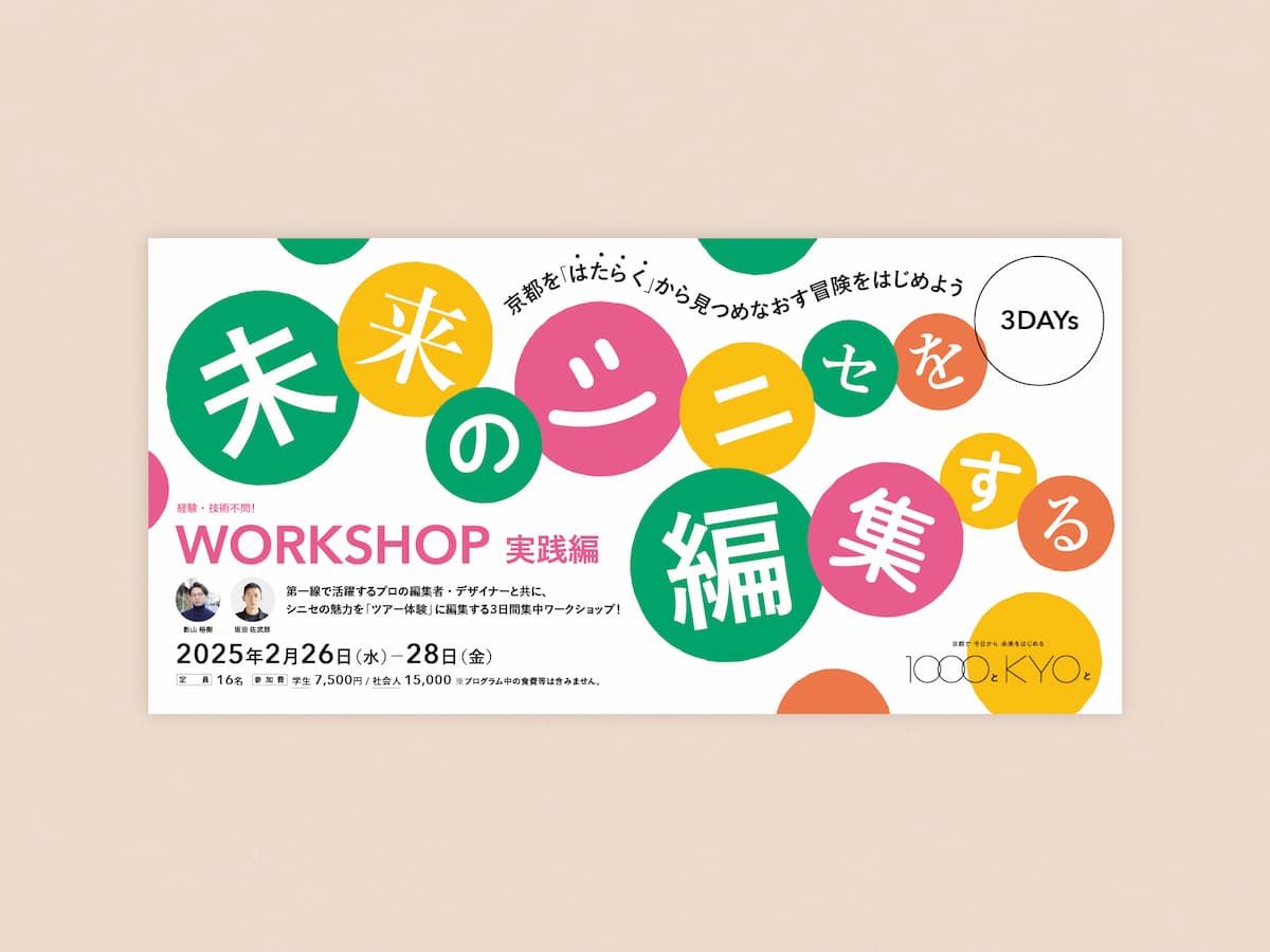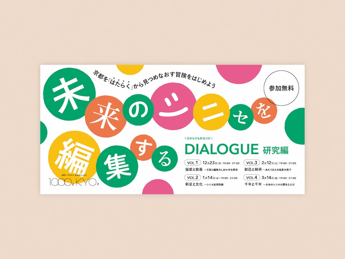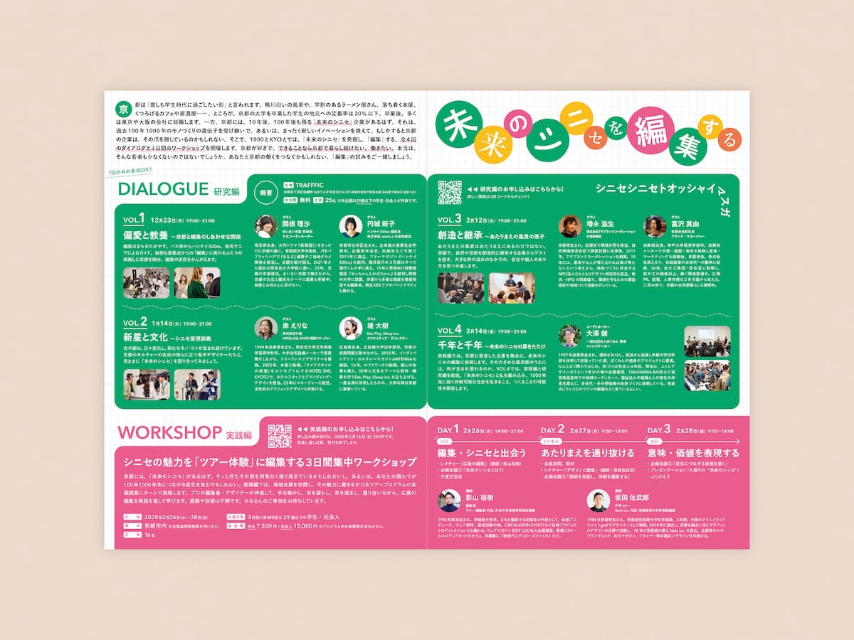 Graphic 未来のシニセを編集する Graphic Prints 未来のシニセを編集する 全4回のダイアログと3日間集中ワークショップを通して、京都を「はたらく」から見つめ直す新たな取り組み「未来のシニセを編集する」のフライヤーのデザインを担当しました。 デザイン 西宮悠(Neki inc.) Latest Post 白の魔法 モネ、大観も使った最強の色 文芸誌301 第6号 第21回京大変人講座「チンパンジーはなぜ絵を描くのか?!」 ACK キッズプログラム LinkArchiScape ー建築ツーリズムをつなぐ 令和7年度 門真市中学生のためのオーケストラ鑑賞会
